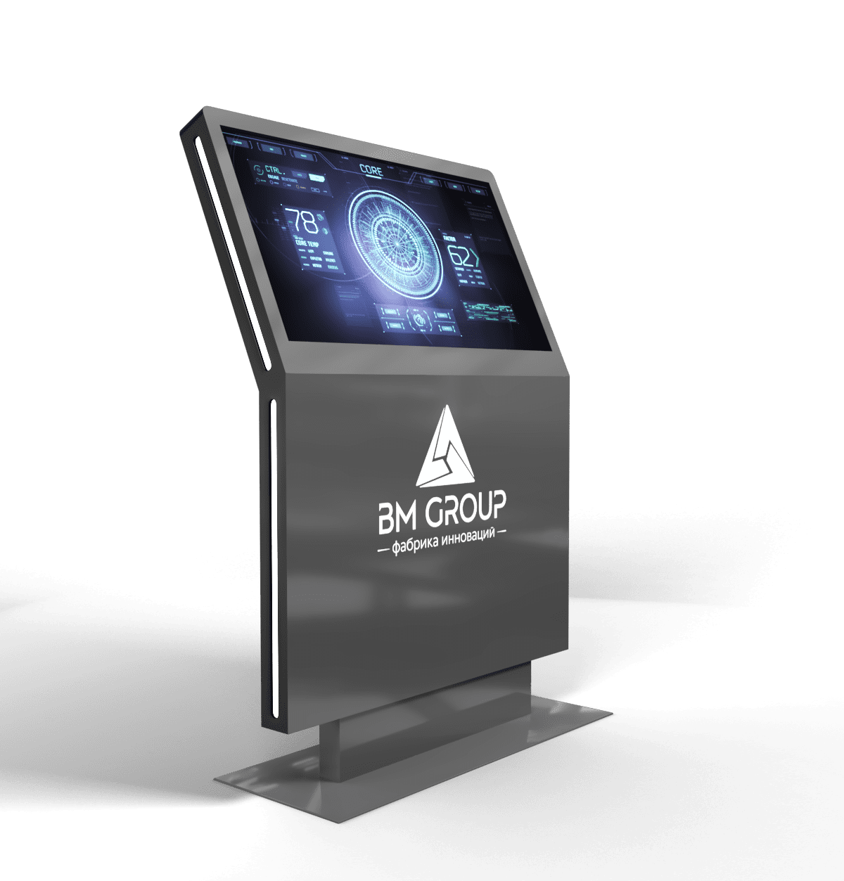 - Прочная и защищенная конструкция — корпус выполнен из ударопрочных материалов, экран защищен закаленным антивандальным стеклом, устойчивым к царапинам и ударам. Конструкция рассчитана на круглосуточную работу в местах с высокой проходимостью.