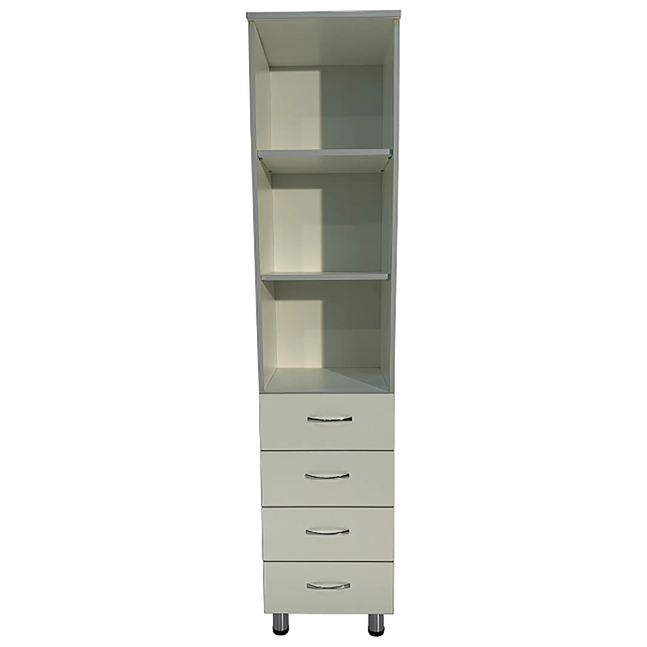 • Ниша шкафа разделена на отделения, что помогает эффективно организовать хранение и быстро находить необходимые материалы.