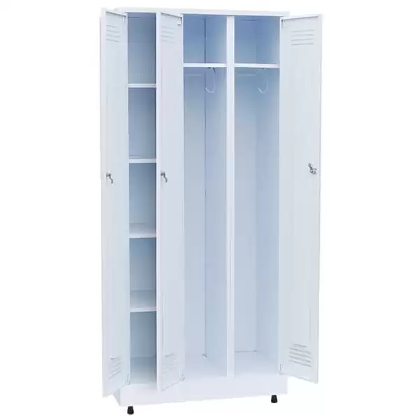 Шкаф палатный ШП-03 — это специализированное медицинское оборудование, предназначенное для хранения одежды и личных вещей пациентов в стационарах, больницах и других лечебных учреждениях. Модель имеет цельносварную конструкцию, оснащена тремя запираемыми дверцами с вентиляционными отверстиями и регулируемыми опорами.