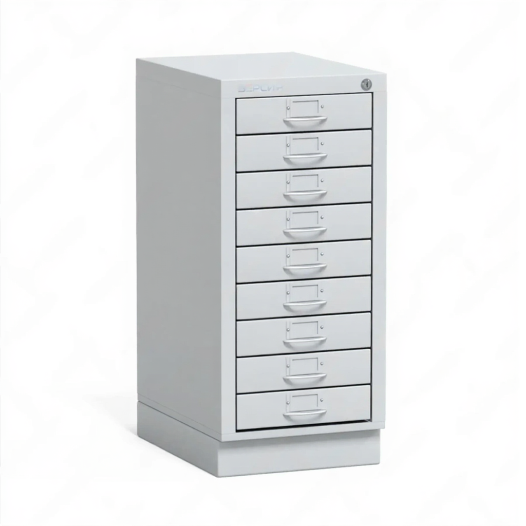 - Рациональная организация пространства — девять выдвижных металлических планшетов (лотков) позволяют эффективно сортировать и хранить документы по проектам, темам или датам. Такое количество ячеек оптимально для организации рабочего или учебного архива среднего объема.