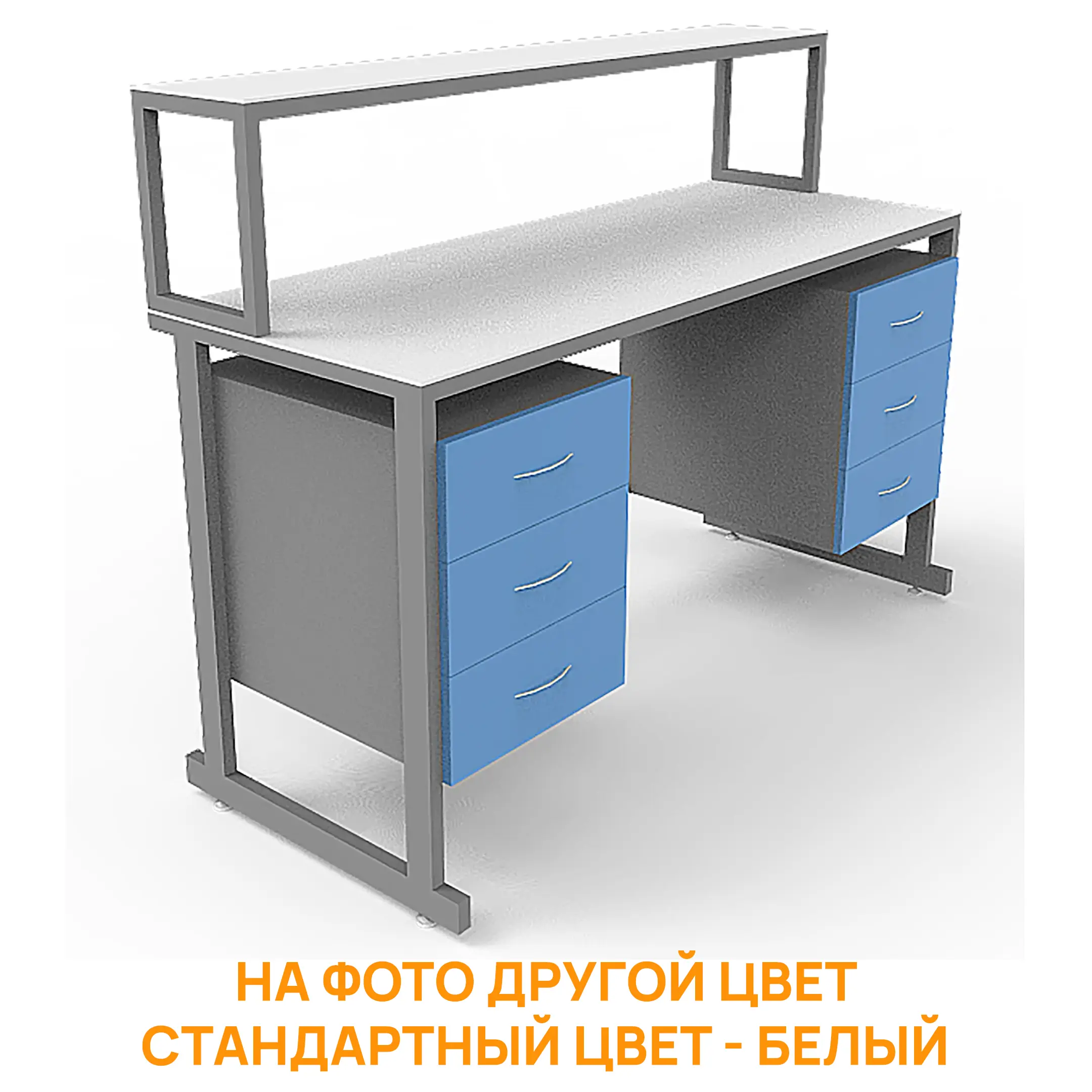 - Функциональная надстройка — полка для дополнительного размещения оборудования, общая высота стола с надстройкой 1250 мм.