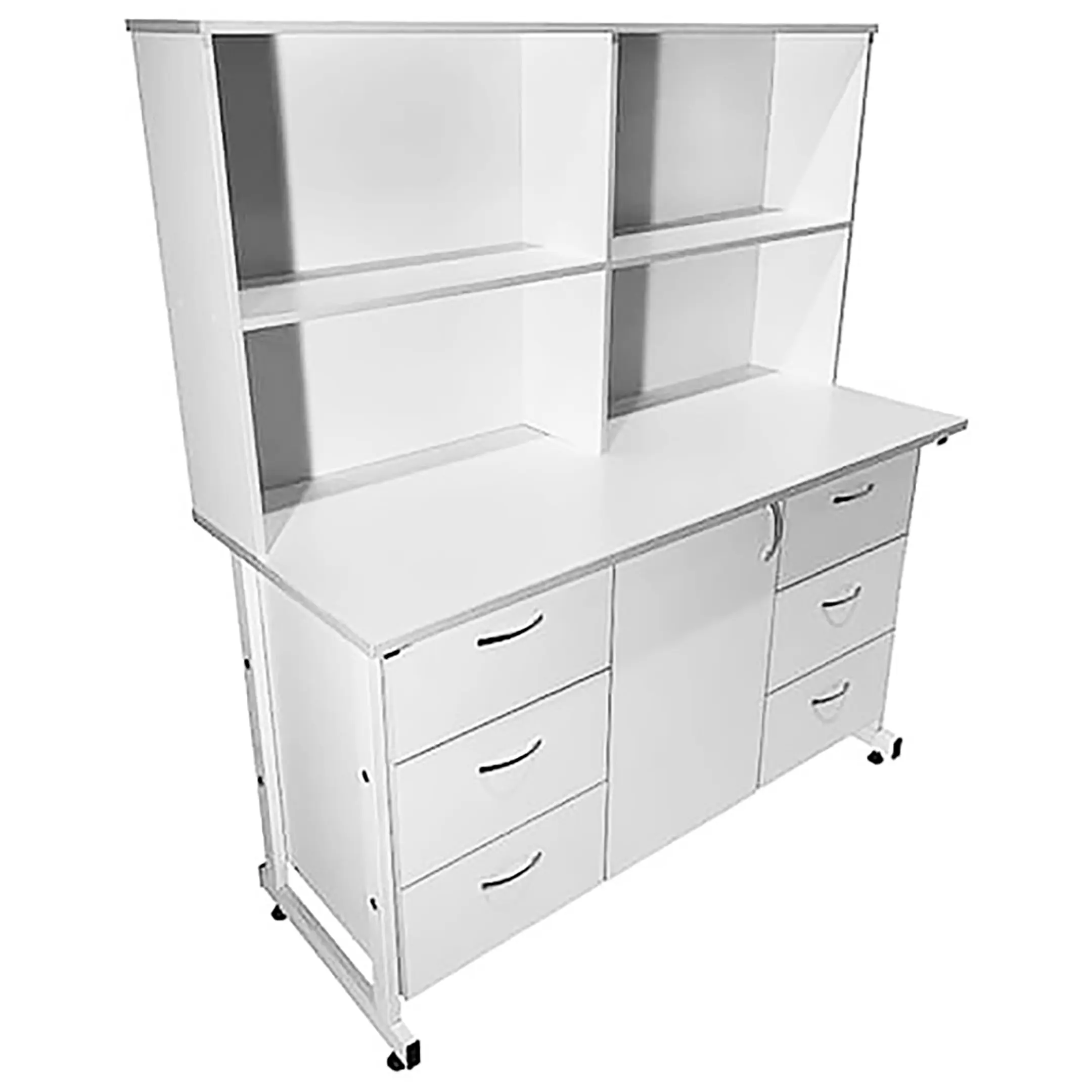 Стол-тумба лабораторная СТл 18.011 с надстройкой (белый) — это оптимальное решение для создания удобного рабочего места лаборанта, занятого химическими исследованиями и требующего эффективной системы хранения различных материалов. Модель оснащена шестью выдвижными ящиками, отделением с дверкой и полкой, а также надстройкой с четырьмя нишами. Каркас выполнен из стального профиля, столешница из ЛДСП толщиной 22 мм.