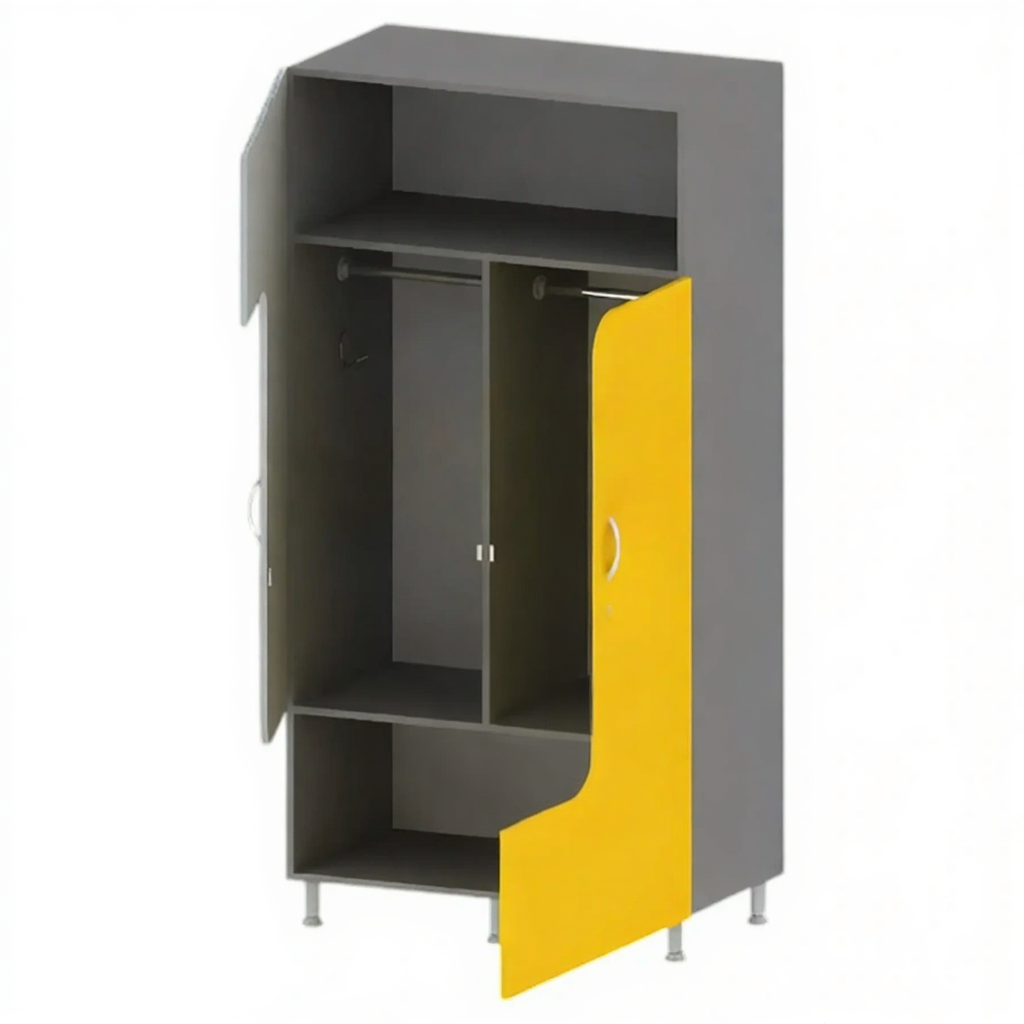 - Двухместная конструкция — две индивидуальные секции для удобного хранения одежды и личных вещей.
