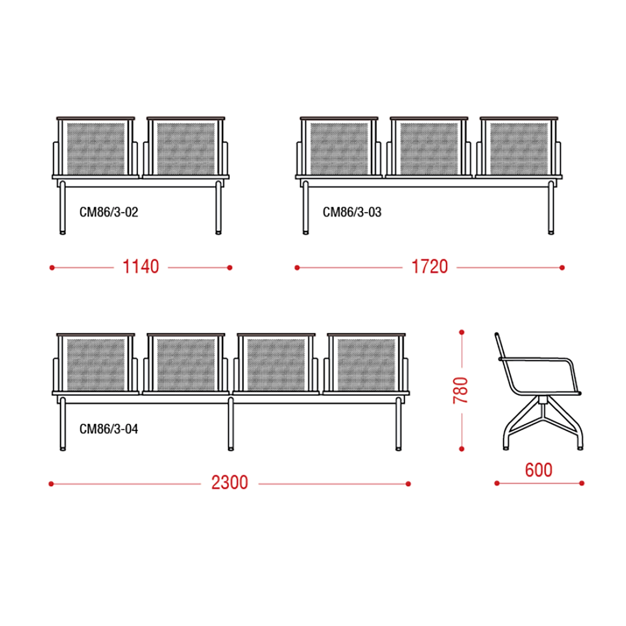 Это стильная многоместная секция мебели выполнена на прочном металлокаркасе, основу которого составляют трубы диаметром 60х60 мм, дополненные трубами меньшего диаметра (19, 22, 30 мм) и профильно-овальной трубой размером 30х15 мм. Для защиты конструкции используется надежное полимерно-порошковое покрытие, обеспечивающее долговечность изделия даже в условиях интенсивной эксплуатации.