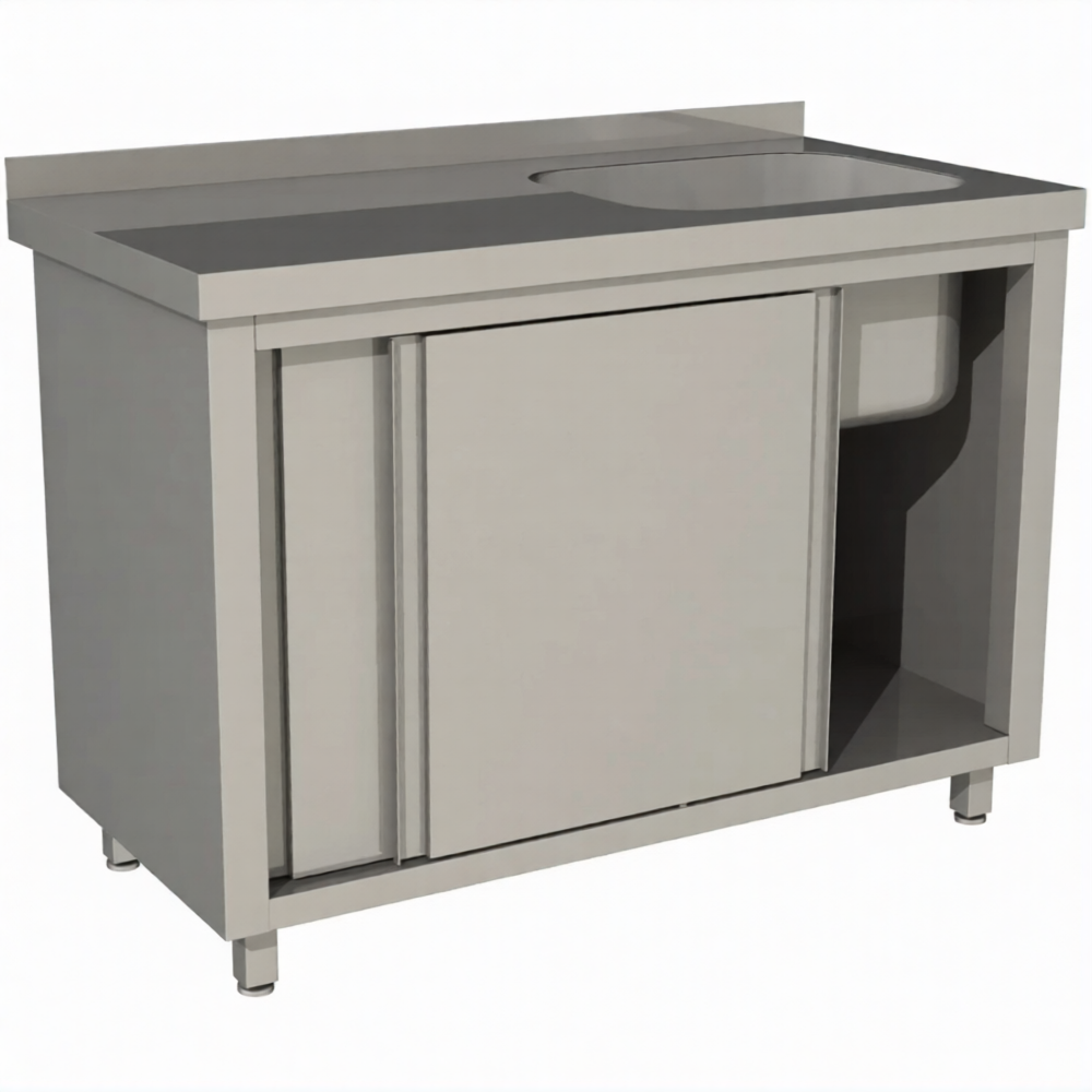 Стол производственный купе с моечной ванной закрытый СПЗК1М-18/7-БП предназначен для применения в моечных отделениях предприятий общепита и торговли различного формата, пищевых производств и пищеблоков для мытья посуды, кухонного инвентаря, продуктов питания и рук персонала. Также позволяет временно разместить кухонный инвентарь.