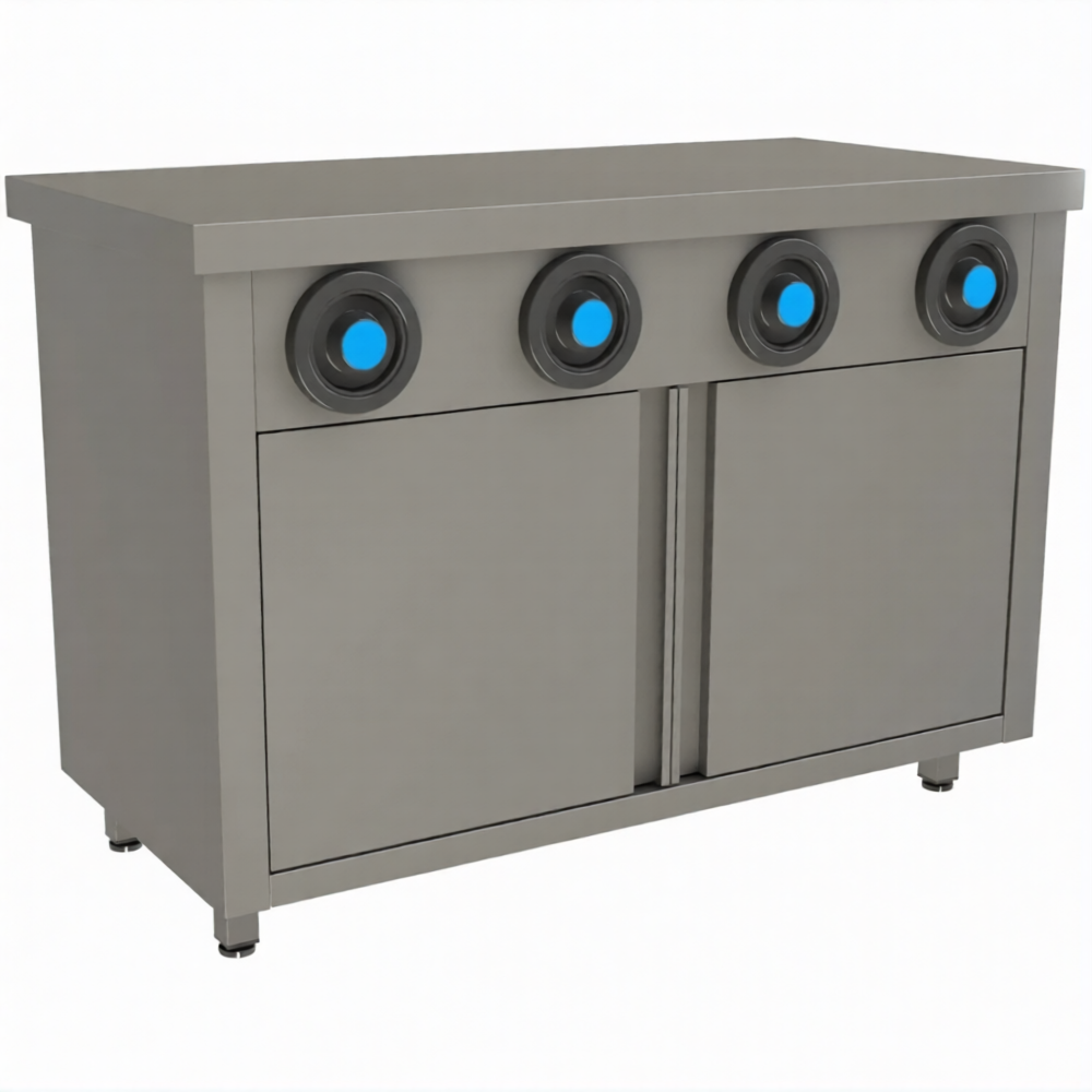 Стол-тумба с диспенсерами для стаканов СПЗРД4-10/6-Б разработан для применения на предприятиях общественного питания любого формата.