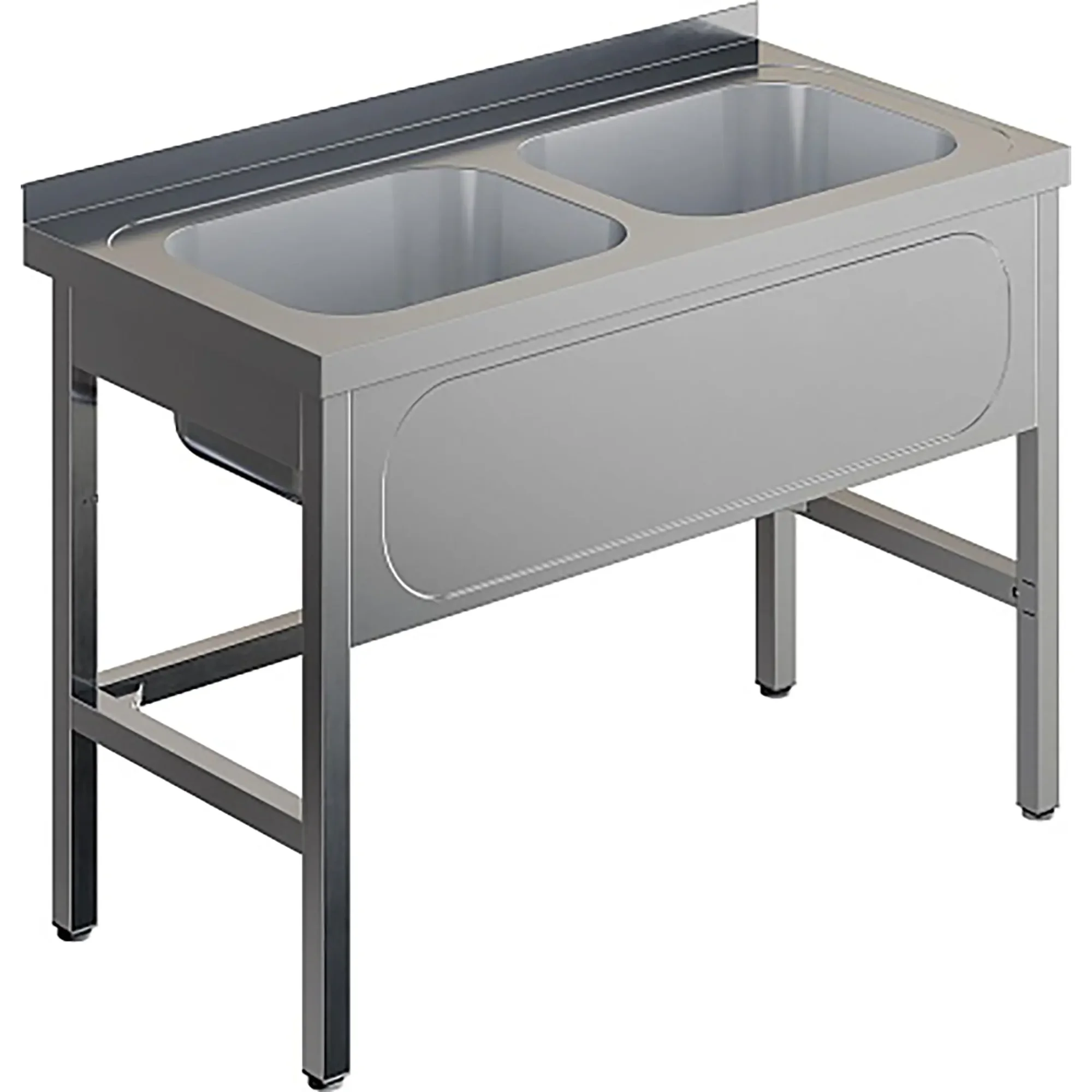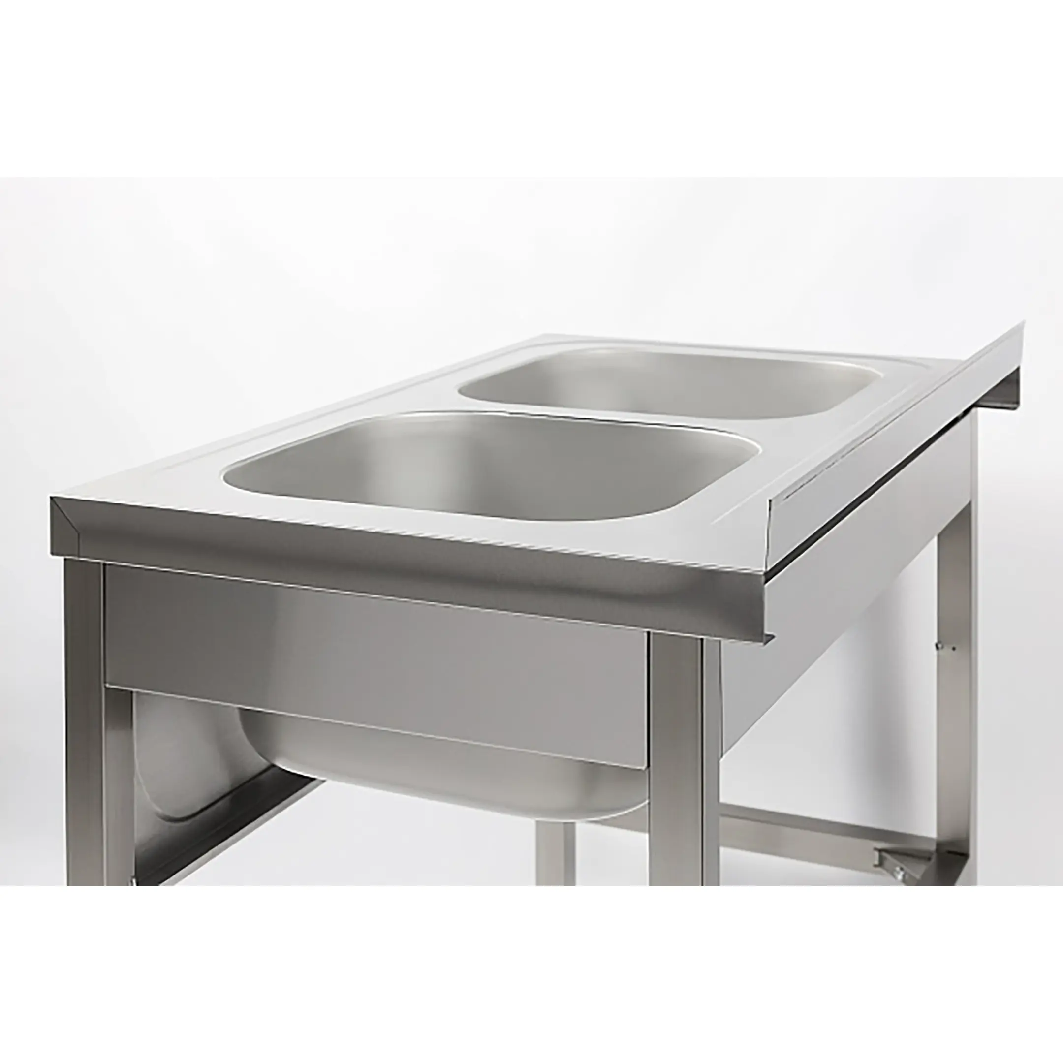 Ванна моечная двухсекционная цельнотянутая с бортом ВМЦ-2/12/6-Б разработана для применения в моечных отделениях предприятий общепита и торговли различного формата, пищевых производств и пищеблоков для мытья посуды, кухонного инвентаря, продуктов питания и рук персонала.
