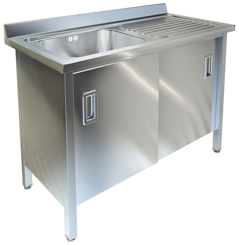 Моечная ванна изготовлена из нержавеющей стали, устойчива к коррозии, не впитывает запахи и легко очищается от жира и грязи. Кромка имеет закругленные края, что уменьшает травмоопасность работников кухни. Обнижение ванны по периметру препятствует проливу воды, а задний борт исключает намокание стены. Ножки регулируются по высоте, что обеспечивает устойчивость ванны на неровной поверхности.