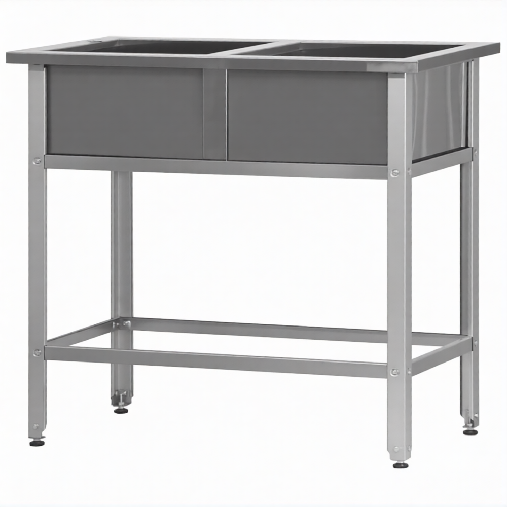 Ванна моечная ВМСн 530/2 «Norma Ral», 2 м/о 430х430х300 (полка с 2-мя отв., борт; ножка угл.) используются на предприятиях общественного питания для ополаскивания и мытья посуды.