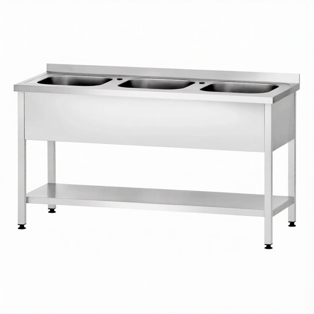 Ванна моечная ВМЦп 860х1800х700 «Profi Inox», 3 м/о 300х500х500, борт, отв. д/смесит.