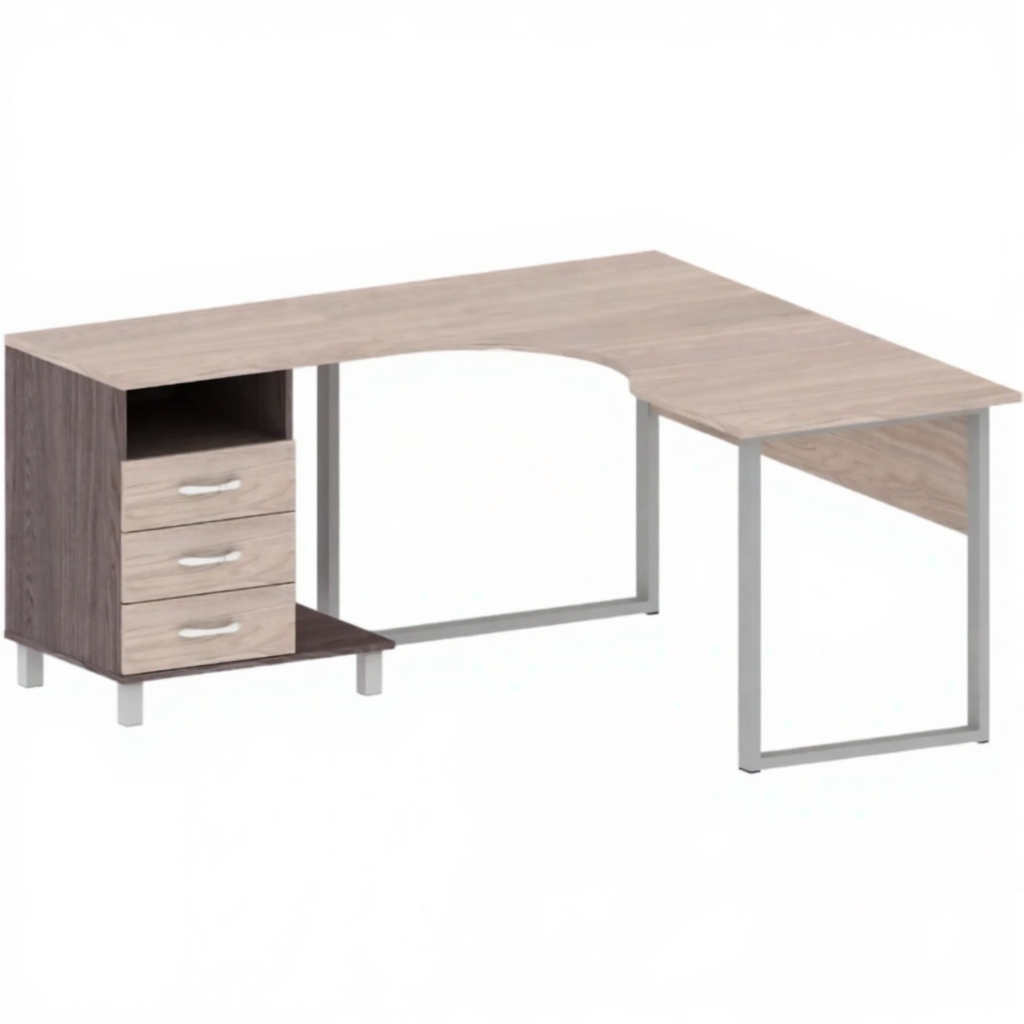 Стол угловой левый с тумбой на металлическом каркасе ОФ-СТ-199-2