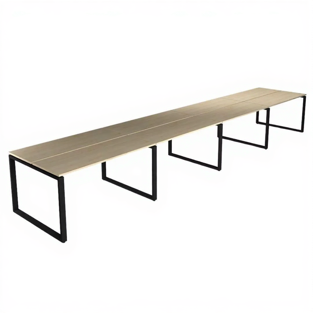 Рабочая станция «бенч» предназначена для оснащения офисных помещений и коворкингов, рассчитана на работу восьми человек, при этом рабочие места расположены напротив друг друга. Бенч-системы можно использовать с разными видами столешниц (ЛДСП, МДФ, массив дерева, пластик).