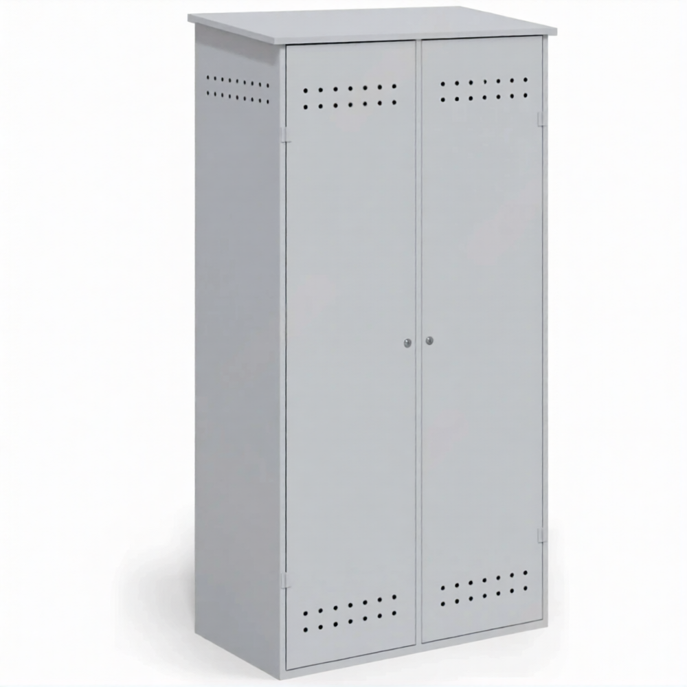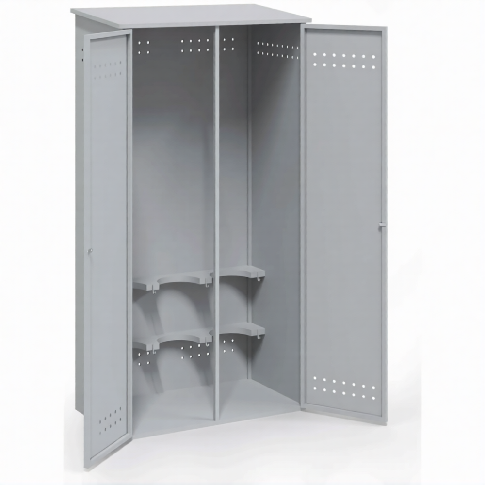 - Гарантия пожарной безопасности в соответствии с нормативами — прочный металлический корпус служит надежным барьером, изолирующим баллоны от источников открытого огня, искр и теплового излучения. Обязательная система естественной вентиляции (перфорация или вентиляционные решетки) обеспечивает постоянный воздухообмен, предотвращая накопление газа и образование взрывоопасной концентрации в случае утечки, что является прямым требованием правил противопожарного режима (ППР в РФ).