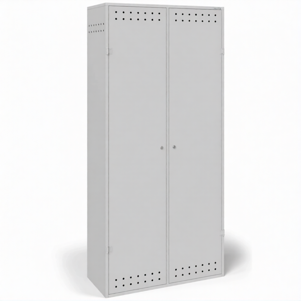 - Надежная защита от хищений и вандализма — усиленная сварная конструкция, массивные сварные петли и возможность установки серьезных запорных устройств (врезные замки, навесные замки повышенной секретности) делают этот компактный шкаф настоящим сейфом для газовых баллонов, эффективно защищающим дорогостоящее имущество.