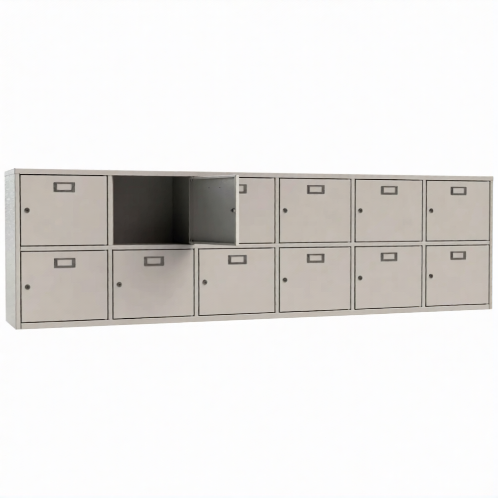 • 12 ячеек для касок. Каждая ячейка оснащена почтовым замком с двумя ключами в комплекте.