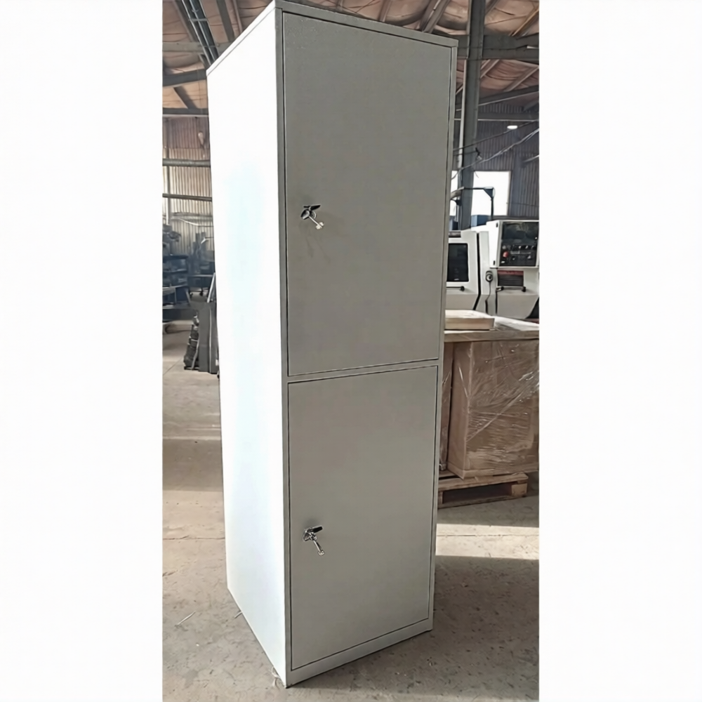 • Шкаф двухдерный с замком - накладной БИФ. Внутри шкафа установлены 2 полки.