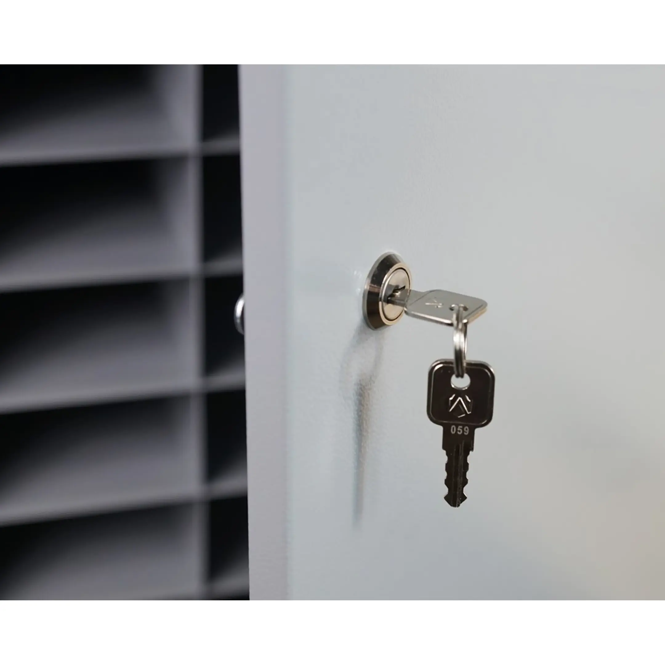 - Повышенная безопасность и защита от краж — каждая ячейка оборудована надежным замком с ключом, а общая конструкция шкафа выполнена из прочного металла, что обеспечивает максимальную защиту устройств от несанкционированного доступа и хищения.