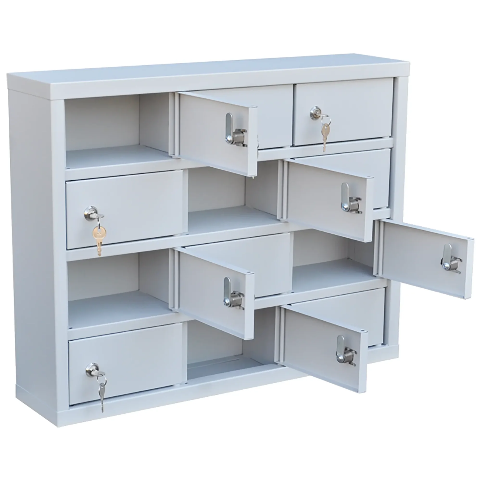 - Компактные размеры и базовая вместимость — шкаф предоставляет 12 индивидуальных запирающихся ячеек, что оптимально для малых коллективов, таких как группа продленного дня, отдел из нескольких сотрудников или спортивная секция. Его небольшие габариты позволяют легко разместить оборудование на столе, полке или тумбе, не занимая много места.
