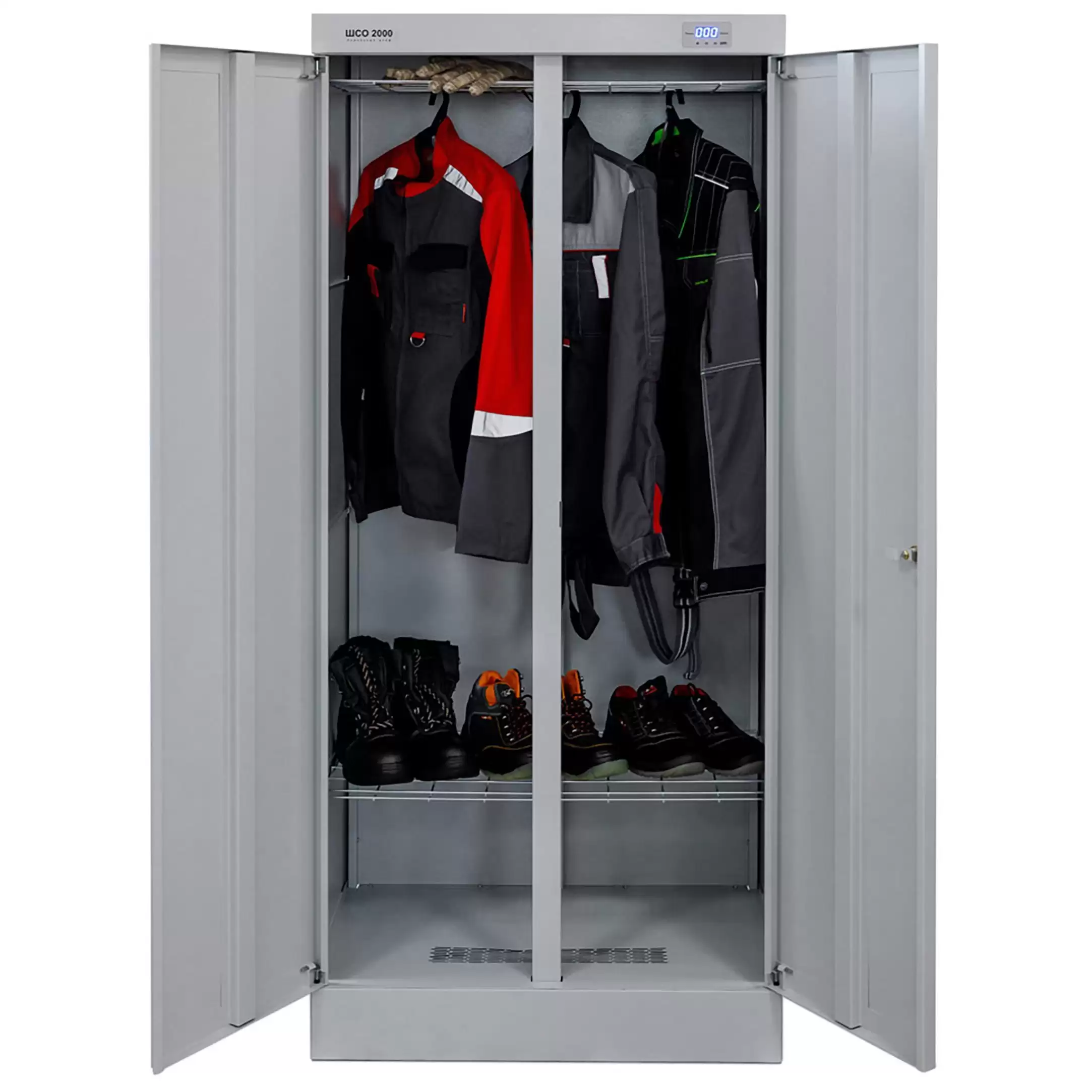 Шкаф сушильный ШСО-2000Н — это производительное и надежное оборудование для эффективной сушки рабочей и спортивной одежды, спецодежды, обуви, белья и инвентаря на предприятиях, в медицинских, спортивных учреждениях, гостиницах и учебных заведениях. Модель обеспечивает быструю, равномерную сушку благодаря циркуляции теплого воздуха, способствуя устранению влаги, запахов и поддержанию гигиены.